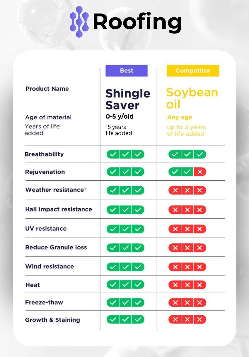 Comparisons to Roofmax and other soy bean oil competitors